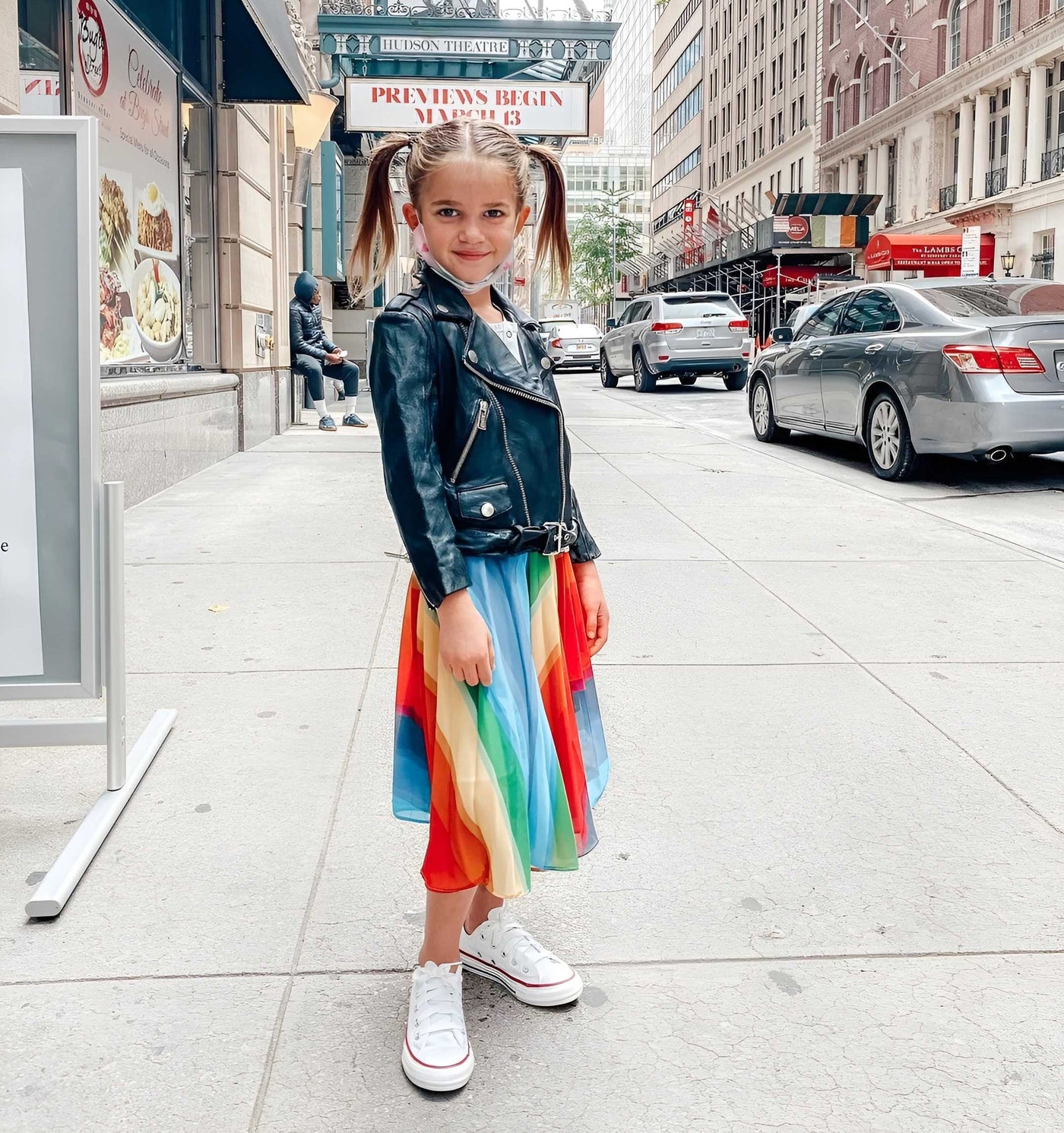 Busy Philipps’ oldest daughter, Birdie, knows how to make a color statement! With purple shoes, bright red pants, and the Lola + The Boys rainbow sweater, we know that all eyes will be on her wherever she goes. And why wouldn’t they be? She looks awesome! You can find the matching Rainbow Leggings here.