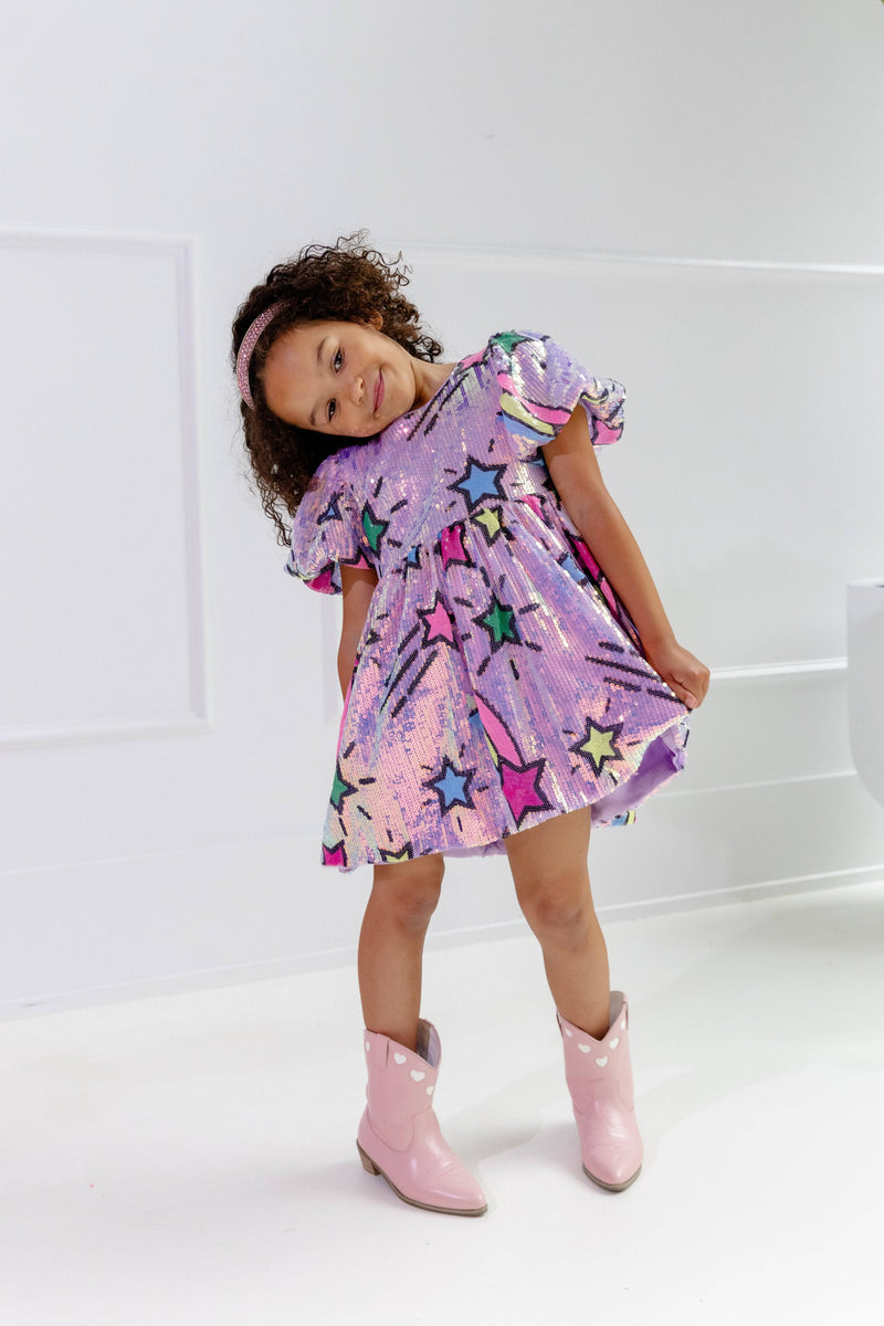Lola + The Boys Dress Lavender Shooting Star Sequin Dress