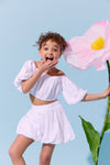 • Bold off-shoulder design with voluminous sleeves brings an elegant flair to this playful set.