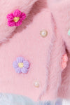 • Adorable cropped cardigan featuring soft, fluffy fabric and colorful 3D daisy accents.