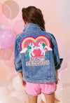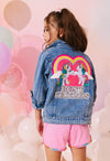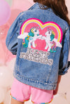 • Adorable denim jacket featuring embroidered My Little Pony patches on the front and a bold "Best Friends" design on the back