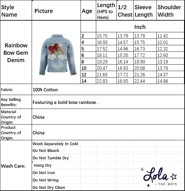 Lola + The Boys Rainbow Bow Gem Denim Jacket