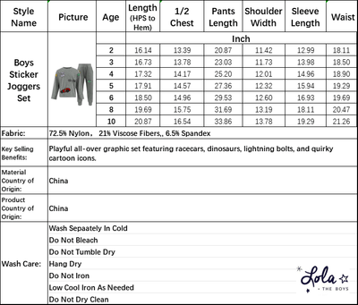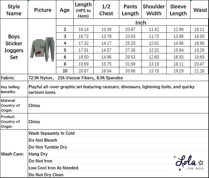 • Playful all-over graphic set featuring racecars, dinosaurs, lightning bolts, and quirky cartoon icons.