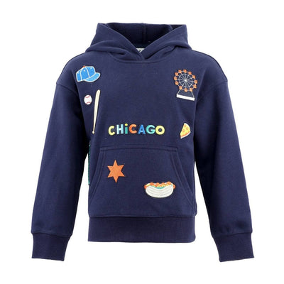 • Embrace the spirit of the hoodie, showcasing vibrant, iconic Chicago-themed patches on the front.