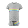 • Trendy grey short set featuring vibrant rainbow sequin detailing across the chest and shorts for a dazzling, stylish appeal.