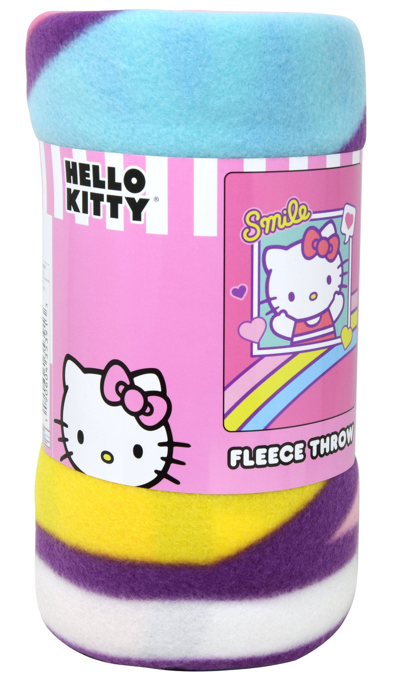 • Cozy and colorfulHello Kitty® fleece throw featuring a bright, cheerful rainbow palette