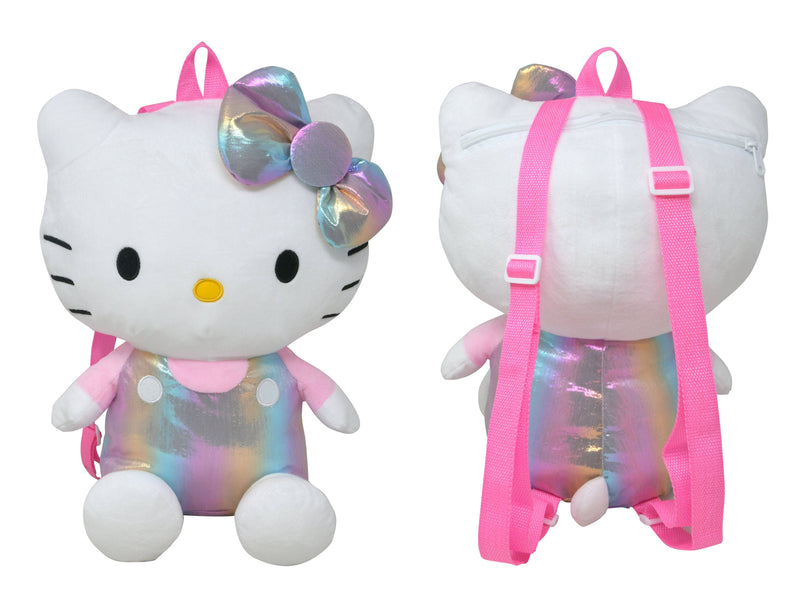 • Adorable 14" Hello Kitty® plush backpack featuring a shiny iridescent outfit and matching bow.