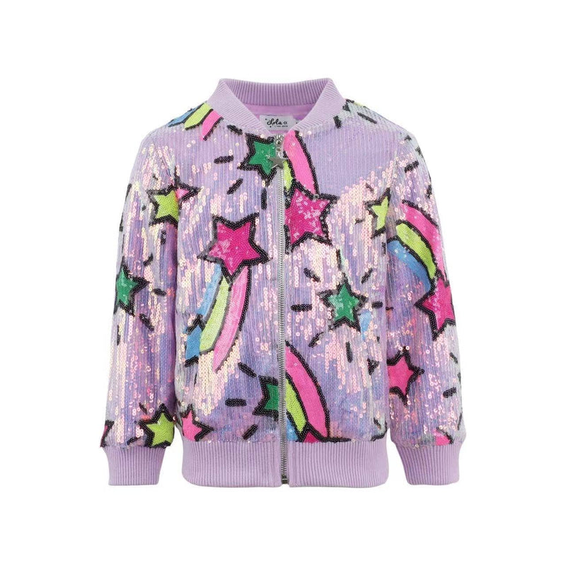 Lola + The Boys 2 Lavender Shooting Star Sequin Bomber
