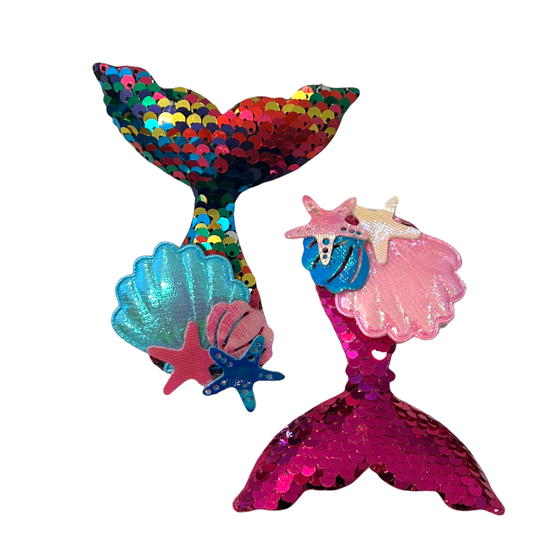 • Rainbow and hot pink, gold and white, star seashell hair-clips