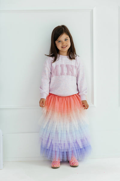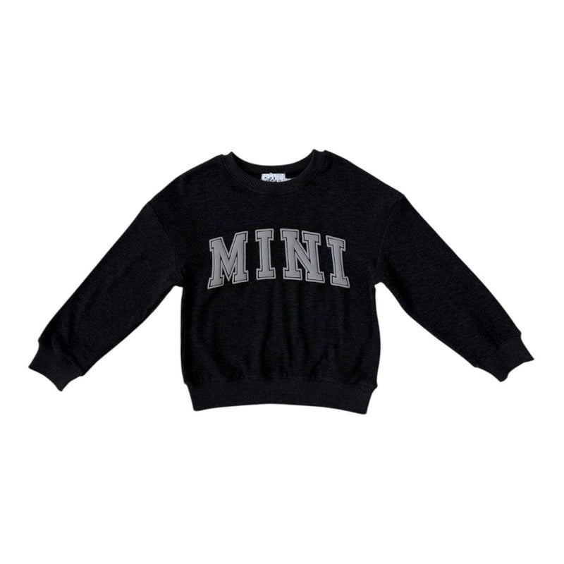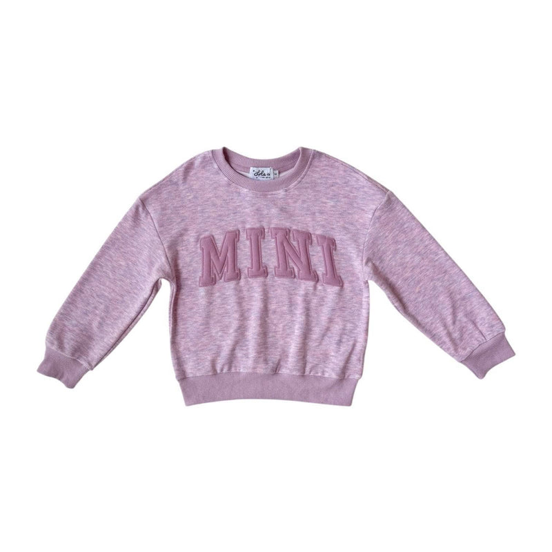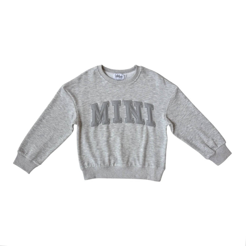 • Classic crewneck sweatshirt featuring a bold "Mini" graphic in soft pastel and neutral tones.