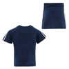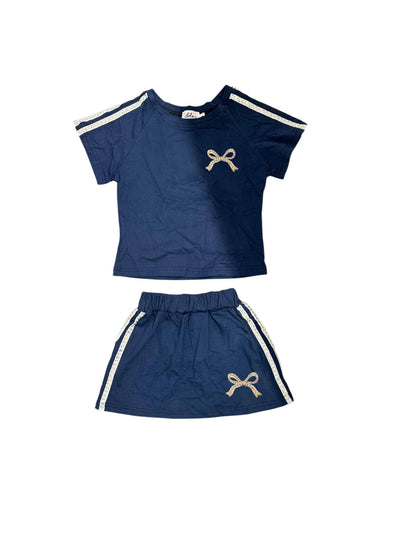 • Navy blue sporty set featuring a short-sleeve top and matching skirt