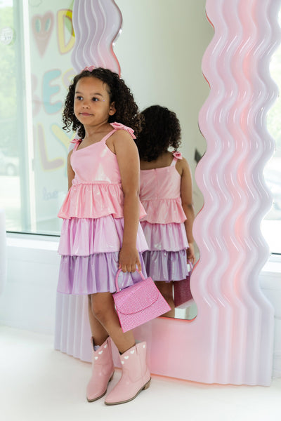 Lola + The Boys Dress Pastel Ombre Shimmer Bow Dress