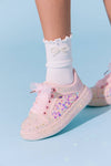 • Glamorous low-top sneakers adorned with rhinestones and shimmering sequins for a dazzling look