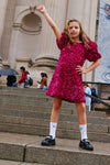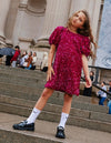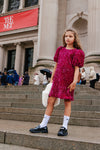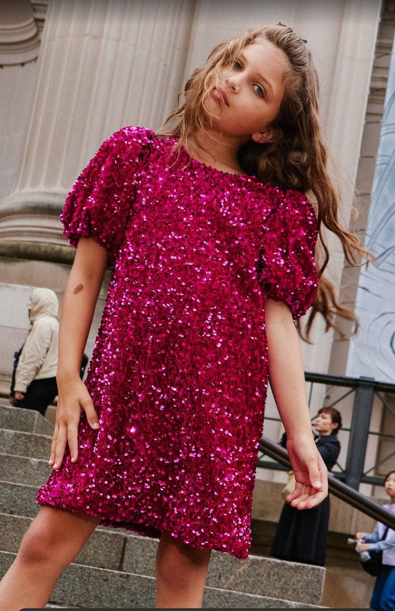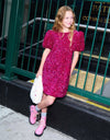 Stunning raspberry velvet dress adorned with all-over shimmering sequins, perfect for making a bold and glamorous statement at any special occasion.