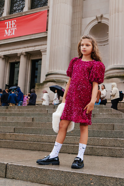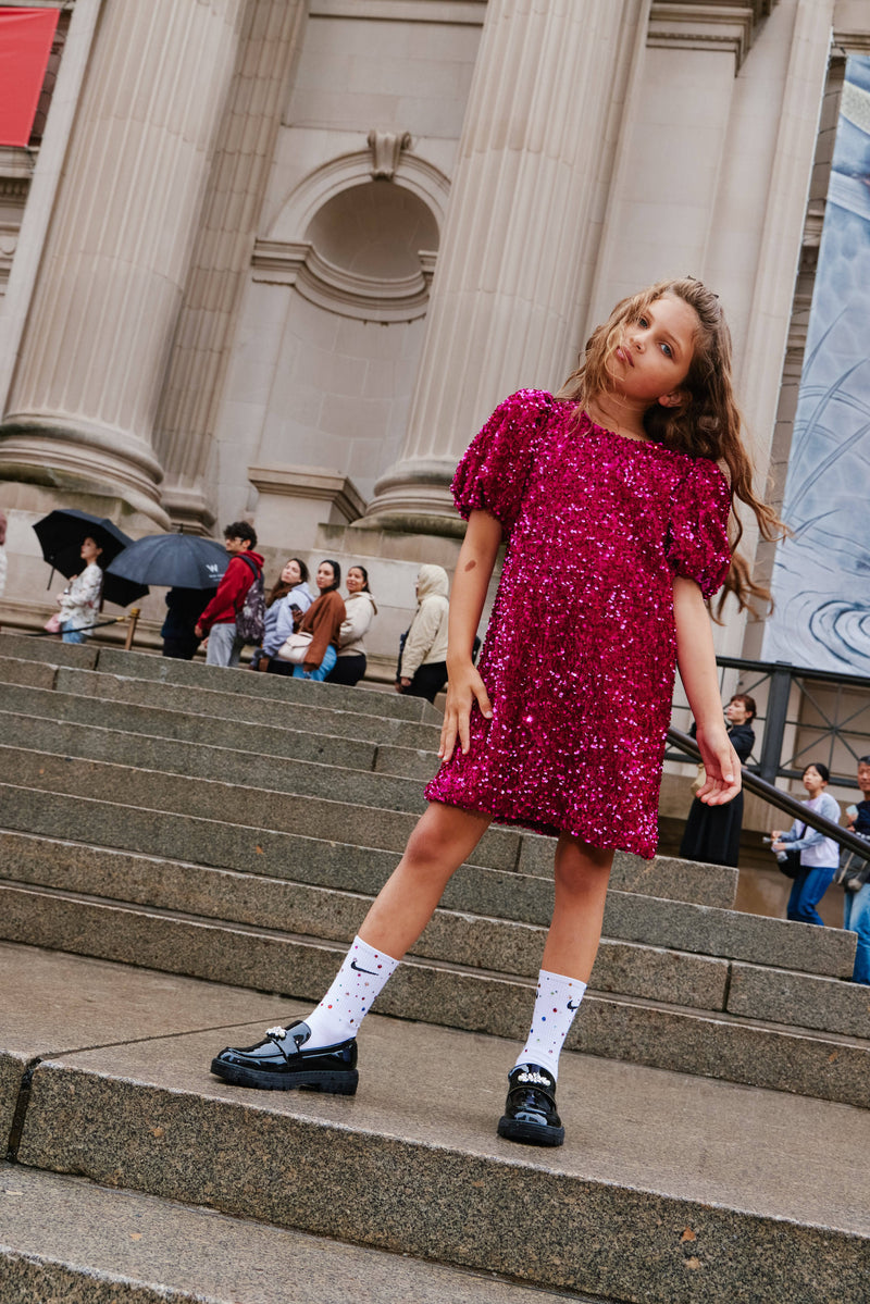 Luxurious velvet fabric provides a rich texture, while the sparkling sequins catch the light, ensuring your little one shines with every step.