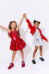• Add a dash of sparkle to special occasions with this dress, featuring a vibrant red sequin finish and an eye-catching bow detail at the front.
