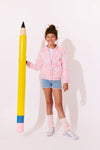 • Add a glamorous layer to any outfit with this bomber, featuring shimmering sequins and delicate blue bow accents for a dazzling effect.