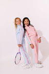 • Full-zip jacket and flared pants offer a flexible, stylish fit for play or everyday wear