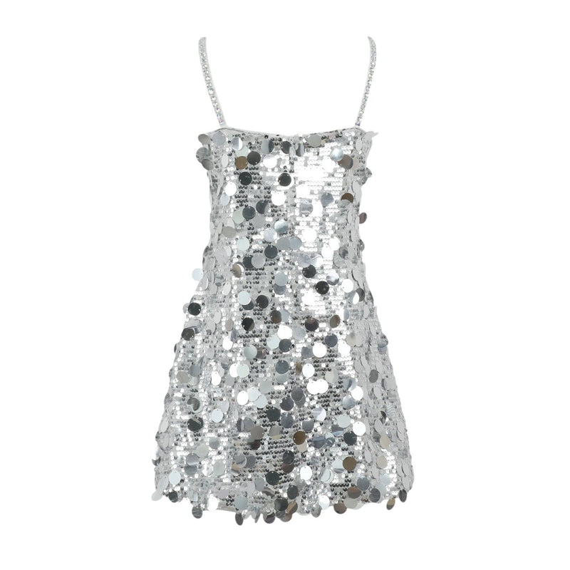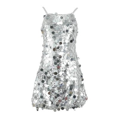 • Eye-catching silver sequin dress with oversized paillettes that shimmer with every step