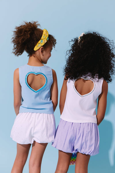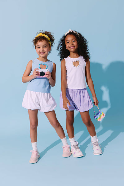• Eye-catching bubble skort embellished with scattered sparkling crystals for a touch of glam.