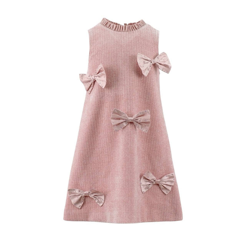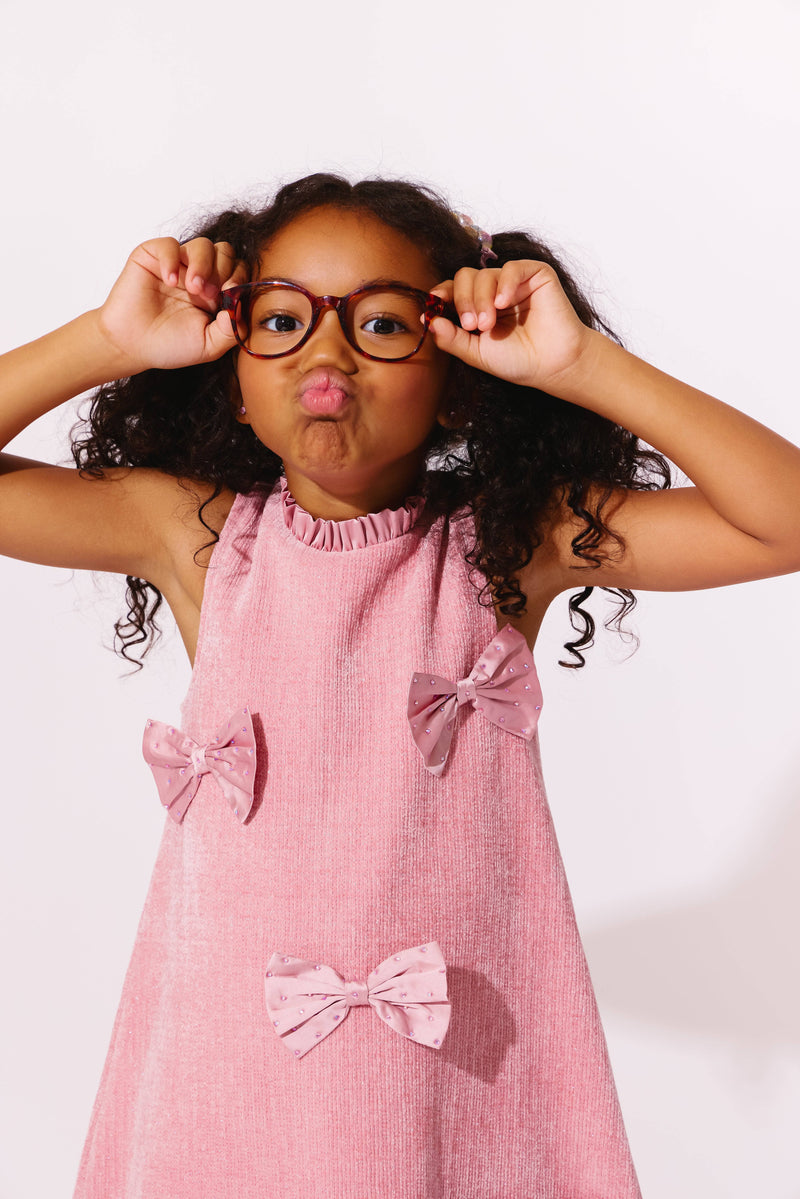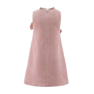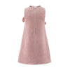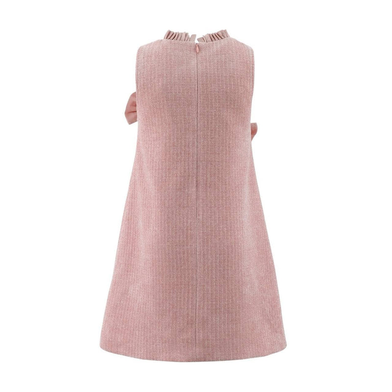 • Elegant shift silhouette crafted in a soft blush knit with a subtle shimmer finish
